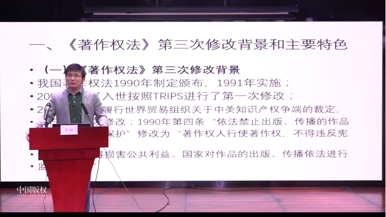 5月27日,由中國(guó)版權(quán)保護(hù)中心指導(dǎo)、《中國(guó)版權(quán)》雜志社主辦、中華版權(quán)代理總公司支持的中國(guó)版權(quán)共享課堂(第24期)邀請(qǐng)中國(guó)版權(quán)保護(hù)中心首席專家,中國(guó)政法大學(xué)教授、博士生導(dǎo)師李揚(yáng)以“《著作權(quán)法》第三次修改重大爭(zhēng)議條款解讀”為主題,對(duì)新修改《著作權(quán)法》進(jìn)行解讀。聚焦《著作權(quán)法》第三次修改背景和主要特色、《著作權(quán)法》第三次修改重大爭(zhēng)議條款解讀、新《著作權(quán)法》適用和執(zhí)行中的問(wèn)題等內(nèi)容進(jìn)行深入解析。50余名學(xué)員現(xiàn)場(chǎng)聆聽(tīng)李揚(yáng)教授精彩講解,線上實(shí)時(shí)觀看人次超3500。