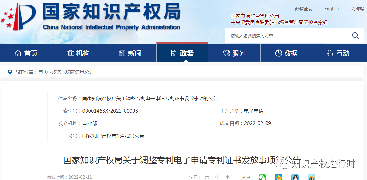 消息來源:國家知識產(chǎn)權(quán)局第472號公告(https://www.cnipa.gov.cn/art/2022/2/11/art_74_173171.html)