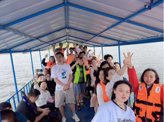 到了地方之后,開始了安營扎寨,過程雖有波瀾,但好在大大小小的帳篷都拔地而起,熱鬧過后看到了??吭诎哆叺拇唬蠹矣植患s而同的決定乘船。山里長大的孩子總是對水情有獨鐘,等了一會,船終于開了,風很大,卻吹不走美妙的景色,吹不走我們的熱情。