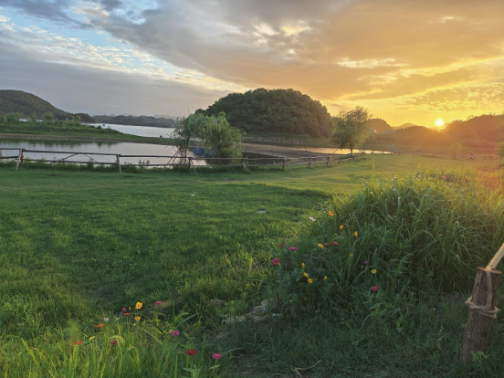 記不太清那天是周幾了,依稀記得那是個陽光明媚的午后,在一聲聲歡呼聲中,大家朝著同一個方向出發(fā)--我們第一次露營的目的地。那是一處被青山包圍的山谷,走進去有小湖泊,青草地,小樹林。