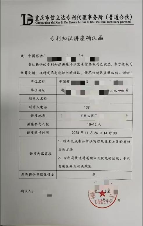 2024年11月26日14點(diǎn)30分,感謝中國(guó)**集團(tuán)**有限公司**分公司的信任與邀請(qǐng),我司開(kāi)啟了十一月的專利第一講!