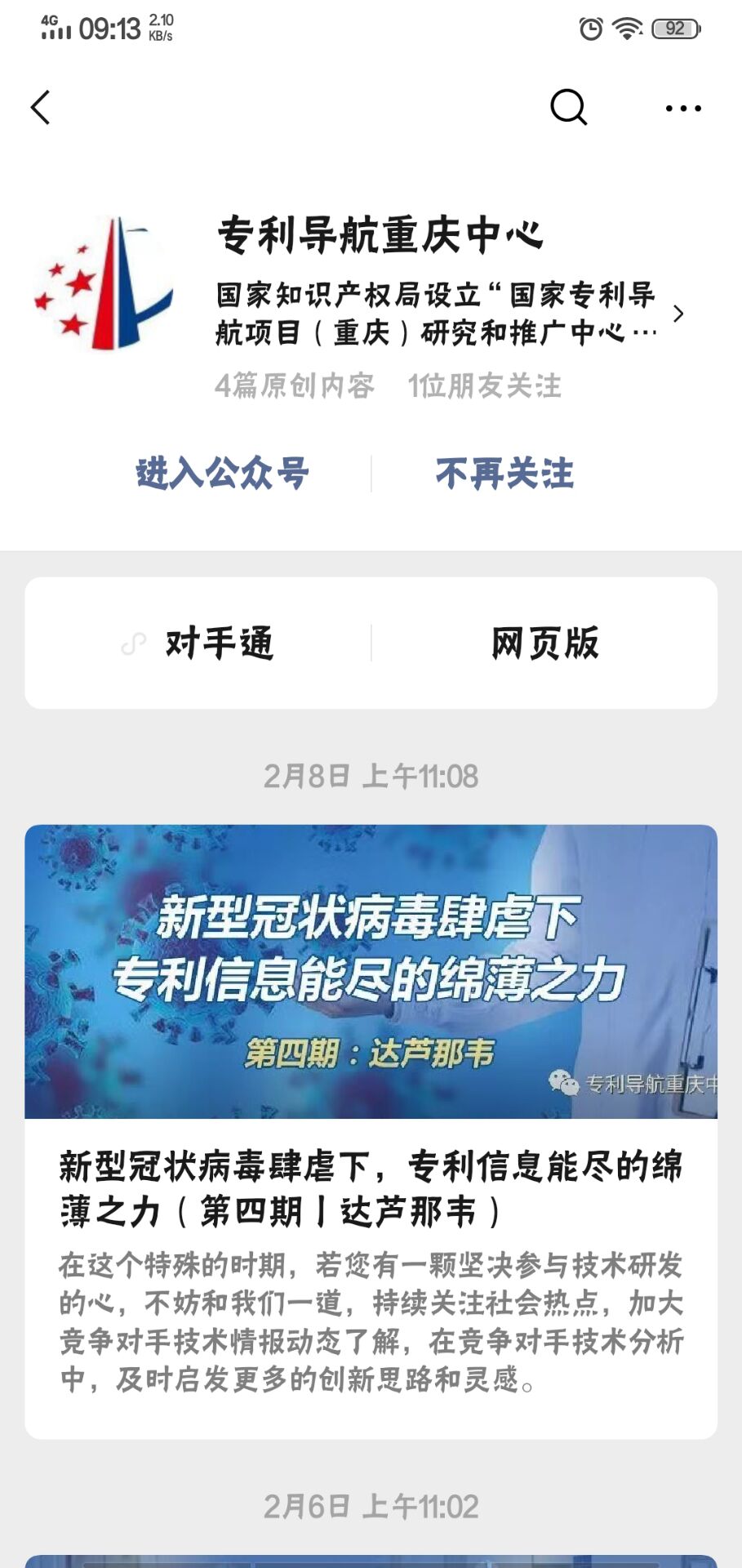首先,需要打開您的微信:找到|“公眾號”,點擊進去,點擊上方“+”號,輸入:“專利導(dǎo)航重慶中心”,點擊關(guān)注。