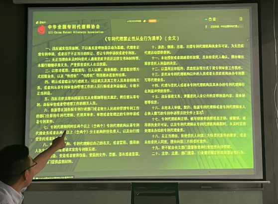 中華全國專利代理師協會于5月15日成功舉辦了《專利代理禁止性從業行為清單》發布及宣貫會,我機構通過線上方式全程參與了此次重要學習會議。會議由中華全國專利代理師協會公長賀化主持,來自全國各地的專利代理機構和代理師代表共同見證了這一行業規范文件的重要時刻。