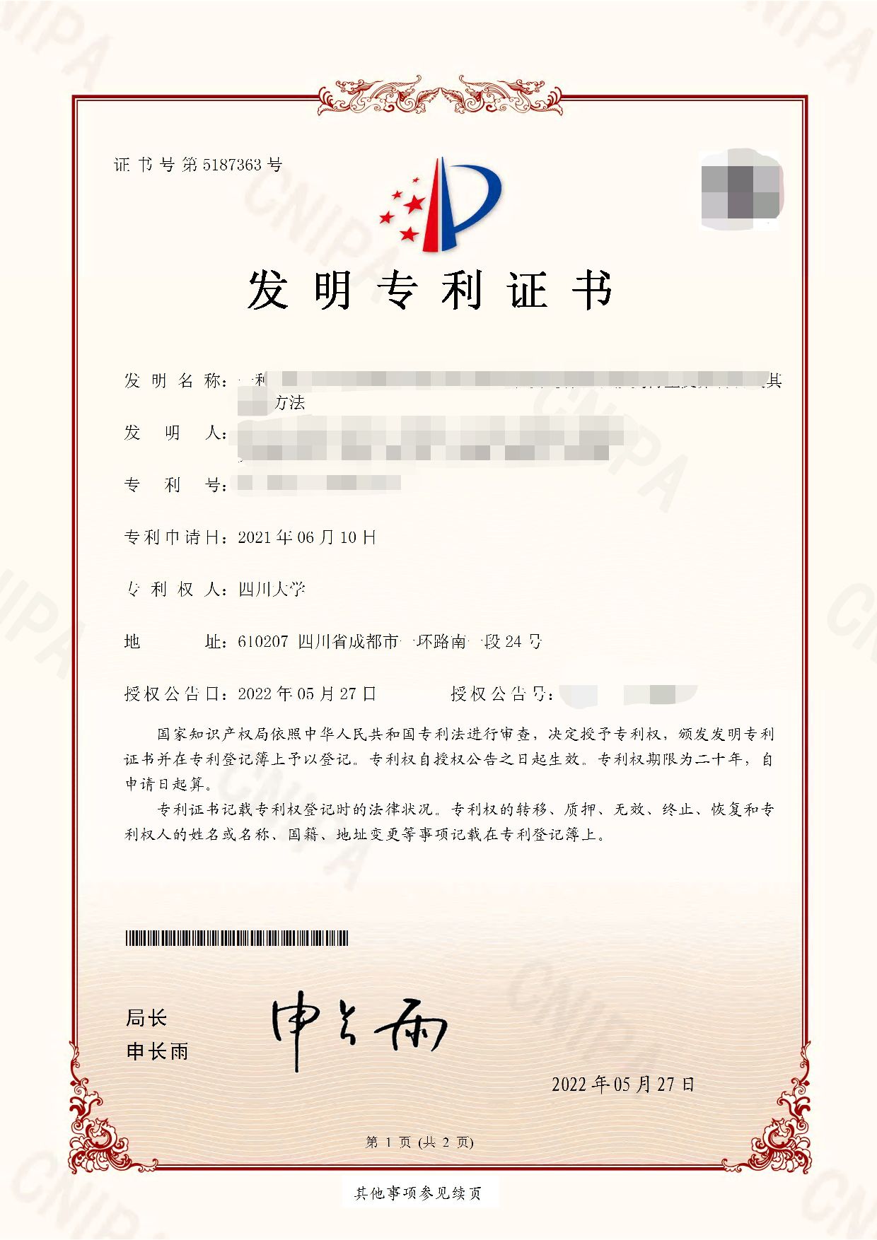 在此,祝賀:四川大學、四川大學華西醫(yī)院作為專利權(quán)人,由我司代辦申報的兩項相關專利完成授權(quán)下證工作。其中最為感慨的就是相關水稻相關的科研工作者。民以食為天,食以稻為先。建國以來,我國農(nóng)業(yè)發(fā)展最引人注目的成就是以占世界7%的耕地,養(yǎng)活了占世界22%的人口。而水稻是我國最主要的糧食作物之一,全國65%以上人口以稻米為主食。水稻問題的解決,很大程度上就穩(wěn)定了我國的糧食市場。我們很感謝申請單位以及發(fā)明人對我司的信任,讓我們參與到相關的工作中。