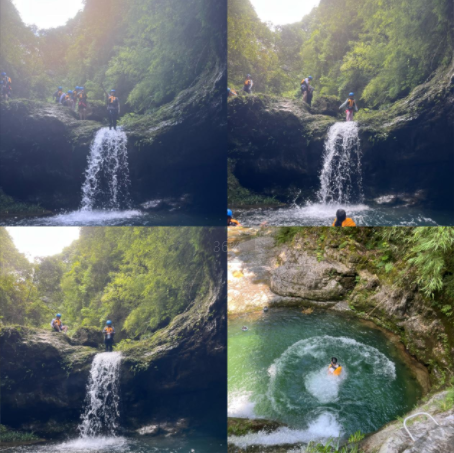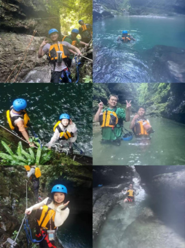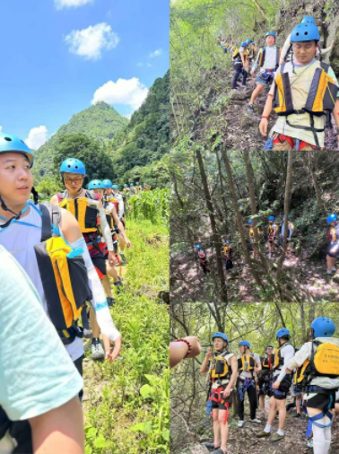 本次團建地點位于貴州省遵義市綏陽縣枧壩鎮觀音巖生態旅游景區,是國家3A級旅游景區,核心景觀為十公里長的原生態峽谷,包含飲馬巖、將軍巖、貴妃池等獨特地貌景觀。我們主要體驗的溪降涉水體驗項目就在此,包含了深潭跳水、飛拉達、探險溯溪、天梯、峽谷溪降、瀑布溪降,持續七個小時的探險旅程。